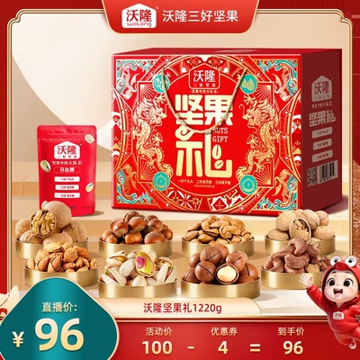 沃隆坚果礼盒坚果礼1220g96元天猫100元